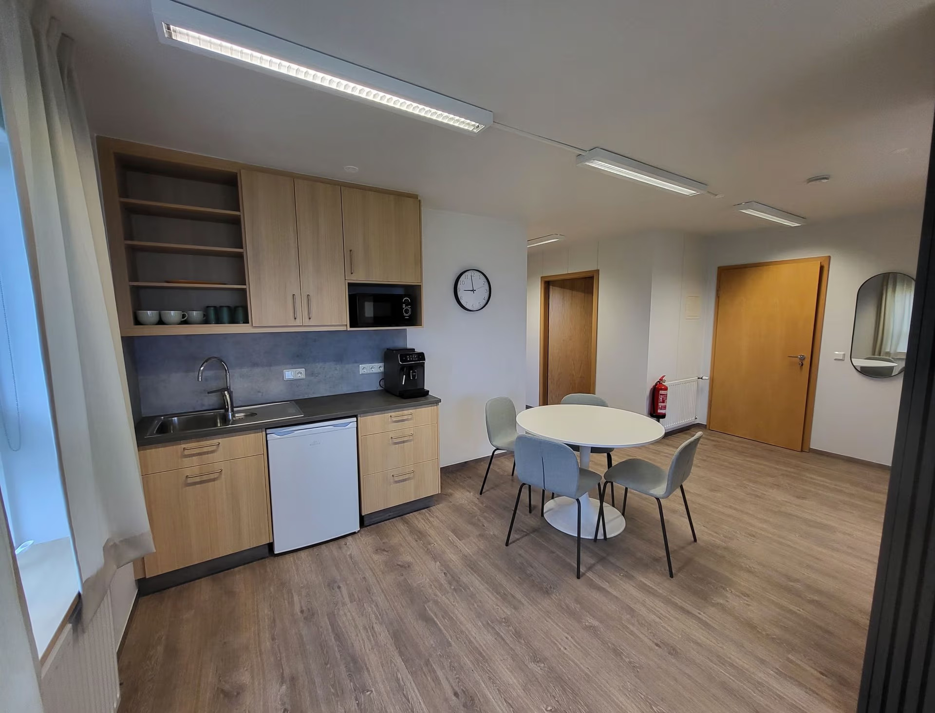 Lítið næðisrými er til staðar þar sem hægt er að taka símtal, sitja stuttan fund í næði eða bara setjast með kaffibolla í ró.